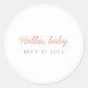 Accueillez votre petit bout avec cet adorable autocollant « Bonjour Bébé » dans un doux design pêche rose ! Parfait pour sceller les enveloppes, les sachets de friandises ou les faveurs de fête lors d'une baby shower pour une adorable petite fille.