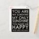 Envoie un peu d'amour ! Ce plaisir Vous êtes ma carte postale de salut ensoleillé va égayer la journée de quelqu'un. La carte postale comporte la citation "Vous êtes mon soleil, mon seul soleil, quand le ciel est gris" en gros imprimé blanc surligné d'un arrière - plan noir. Les cartes postales vierges sont une alternative économique aux cartes de voeux lorsque vous voulez envoyer une note rapide. Communiquer avec les clients et les clients Notes personnelles Montrer de la gratitude aux amis et à la famille pour les cadeaux Mariages et douches nuptiales Joignez-vous à des paniers cadeaux, et des sacs de bonté Quelques autres cartes postales que vous pouvez apprécier...
