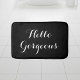 Bonjour magnifique tapis de bain de typographie noir et blanc. Décor maison de salle de bain classique. De belles lettres de calligraphie stylisées. Modèle personnalisé. Idée cadeau de mariage ou d'anniversaire pour l'étudiant, les jeunes mariés, marié et marié, mari et femme, couple engagé, etc. Jolie décoration intérieure pour élégante salle de bain, dortoir salle de douche etc. Disponible en petite, moyenne et grande taille. Couleur arrière - plan personnalisable.