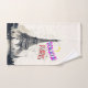 Bonjour Paris coloré. Serviette à main. Achetez les meilleurs cadeaux le jour de la Tour Eiffel 31 mars pour vos amis, filles, garçons, frères, soeurs, parents et grands-parents. #eiffeltowerday #t-shirts