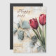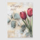 Le calendrier présente un design vintage avec un arrière - plan en bois en détresse et une superposition de script. Deux tulipes rouges et des feuilles d'eucalyptus apportent une touche de nature et d'élégance. L'année "2025" et le mot "Happy" sont affichés dans le script décoratif. Si vous êtes nouveau à Zazzle, je suis heureux de vous aider à customiser votre design. N'hésitez pas à me contacter à daed.halabi@gmail.com