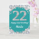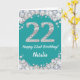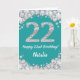 Joyeuse carte de Parties scintillant Turquoise Turquoise Aqua et Silver 22e anniversaire avec nom personnalisé. Pour plus de personnalisation, cliquez sur le bouton "Customiser" et utilisez notre outil de conception pour modifier ce modèle.