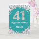 Bonne 41e anniversaire Turquoise Turquoise Aqua et Carte Parties scintillant Argent avec nom personnalisé. Pour plus de personnalisation, cliquez sur le bouton "Customiser" et utilisez notre outil de conception pour modifier ce modèle.