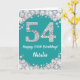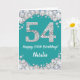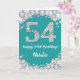 Joyeuse 54e anniversaire Turquoise Turquoise Aqua et Carte Parties scintillant Argent avec nom personnalisé. Pour plus de personnalisation, cliquez sur le bouton "Customiser" et utilisez notre outil de conception pour modifier ce modèle.