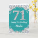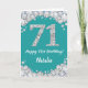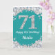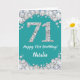 Bonne 71e anniversaire Turquoise Turquoise Aqua et Carte Parties scintillant Argent avec nom personnalisé. Pour plus de personnalisation, cliquez sur le bouton "Customiser" et utilisez notre outil de conception pour modifier ce modèle.