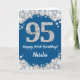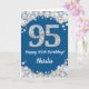 Bonne 95e Anniversaire Carte Parties scintillant bleue et argent avec nom personnalisé. Pour plus de personnalisation, cliquez sur le bouton "Customiser" et utilisez notre outil de conception pour modifier ce modèle.