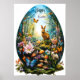 Grand Poster de Pâques avec un gros oeuf de Pâques et de mignons animaux comme un lapin ou un lapin de Pâques. Forêt d'Imaginaire magique Art Floral avec fleurs et animaux adorables. Joyeux Pâques !
