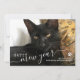 Au lieu des cartes de fin d'année, envoyez une bonne carte de nouvelle année avec une photo de votre chat pour animaux de compagnie et le libellé "Bonne année pour animaux de compagnie" avec un empreinte de patte dans les styles de caractères rétro vintage de script et de machine à écrire. Il vous suffit de télécharger votre photo et de personnaliser vos noms pour une carte de voeux de vacances.