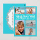 Carte postale photo Joyeuse du Nouvel An avec modèle d'adresse postale. Couleur bleu aqua brillante avec cinq modèles photo. Ajoutez les numéros de la nouvelle année derrière l'accueil.