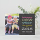 Carte de voeux de vacances de bonne année de tableau avec votre photo de famille préférée. ELKE CLARKE© disponible chez www.zazzle.com/monogramgallery. Envoyez vos salutations de nouvelles années à vos amis et famille utilisant cette carte de vacances d'amusement avec la photo. "Bonne année meilleurs voeux pour 2015" dans la typographie lunatique d'amusement. Vous pouvez "la customiser" et changer la couleur des mots pour assortir votre photo. Créez votre propre unique d'une carte aimable de vacances. Ajoutez votre propre photo, en saluant le message et le texte sur l'avant de la carte, telle que votre nom de famille, ou votre initiale de monogramme ou vos prénoms. Le choix est à vous à être créatif et pour faire lui tous vos propres. AJOUTEZ PLUS DE TEXTE ET DE PHOTOS AU DOS DE LA CARTE SI VOUS SOUHAITEZ. Remplacez la photo témoin par votre propre portrait de vacances de famille. Noircissez l'arrière - plan de tableau. Autre colore disponible.