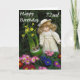 Jolie carte de 72ème anniversaire avec jolie petite poupée et des primroses et des jonquilles colorées.
