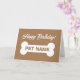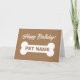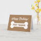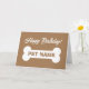 Bonne carte d'anniversaire pour chien de compagnie avec gros os mignon. arrière - plan couleur Brown ou personnalisé. Personnalisez avec le nom de l'animal et le message à l'intérieur. Carte de voeux amusante pour amoureux des animaux.