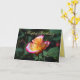 Un beau rose rayé de menthe poivrée orne cette carte sur le devant et une belle rose rouge grace le dos de cette carte.