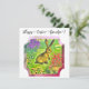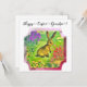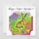 Une belle carte de Pâques avec un message de Pâques Joyeux personnalisable Sur l'illustration, un petit lièvre timide s'occupe dans les fleurs.