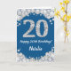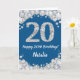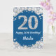 Bonne carte de Parties scintillant 20e anniversaire bleu et argent avec nom personnalisé. Pour plus de personnalisation, cliquez sur le bouton "Customiser" et utilisez notre outil de conception pour modifier ce modèle.