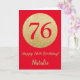Bonne carte de Parties scintillant rouge et or 76e anniversaire avec nom personnalisé. Pour plus de personnalisation, cliquez sur le bouton "Customiser" et utilisez notre outil de conception pour modifier ce modèle.