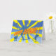 Skateboard action on a Birthday Card - avec un groupe de skateurs effectuant des tours et des cascades dans un skatepark cadre contre un arrière - plan de sunburst jaune et bleu vif. Les mots Joyeux Anniversaire apparaissent dans l'écriture d'action rouge et jaune. C'est la carte idéale pour les amateurs de skate dans votre vie ! Ajoutez votre propre message à l'intérieur.