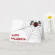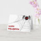 Bonne carte d'Halloween avec une araignée noire et de grands yeux de feu rouge sur une toile d'araignée. N'oubliez pas que vous pouvez customiser cette carte comme vous le souhaitez !
