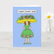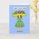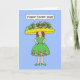 Dessin d'une dame portant une fabuleuse robe et un bonnet de Pâques. La dame dit "Bonne Pâques 2026". L'image a un arrière - plan de couleur bleu pâle.