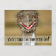 Carte postale d'oiseau souriant amusant avec le texte "Tu me fais sourire !" sur le devant.