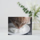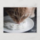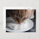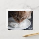 Carte postale avec photo d'un chat léchant la crème. Les mots nous rejoignent dans un coin. Personnalisable .
