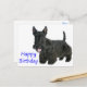 Aww...Qui peut résister au visage mignon d'un chien chiot écossais Terrier ? Cette charmante carte postale Happy Birthday salue un chien écossais noir Terrier mis en valeur contre un arrière - plan blanc immaculé. Les cartes postales d'anniversaire sont une alternative économique aux cartes de voeux lorsque vous voulez envoyer une note d'anniversaire rapide. D'autres cartes d'anniversaire pour chien que vous aimerez...