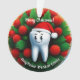 Cette mignonne dent porte un casquette Père Noël et sourit sur un arrière - plan rouge et vert.