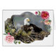 Image douce d'une mère d'aigle chauve avec ses nids. Déclenché par une bordure fleurie.