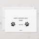 Un merveilleux cadeau de Fête des pères pour tous les chiens là-bas. Ajoutez votre photo préférée de votre pooche et son nom à la carte de voeux pour personnalisation. Vous pouvez modifier le texte ainsi que la police, la taille de police et la couleur pour qu'ils correspondent à votre image. Les empreintes de pattes au dos de la carte peuvent également être redimensionnés et recolorés.