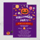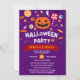 Cette joyeuse invitation d'Halloween est remplie de citrouilles souriants et de douceurs - parfait pour la célébration éffrayante de votre enfant ! (OEuvre générée par l'IA)