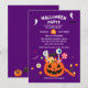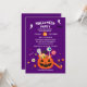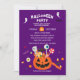 Cette joyeuse invitation d'Halloween est remplie de citrouilles souriants et de douceurs - parfait pour la célébration éffrayante de votre enfant ! (OEuvre générée par l'IA)