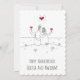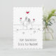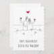 La Femme et le Mari d'âge moyen sont assis sur la côte de la mer en tenant des verres de vin dans leurs mains. Ils regardent le coucher du soleil, mais le soleil prend la forme d'un coeur brillant pour ce moment heureux de leur anniversaire mariage. La conception de la carte est faite dans une technique très simple de stylo et de dessin animé à l'encre avec les trois taches rouges : coeur et deux verres à vin. Vous pouvez facilement personnaliser les noms dans la partie inférieure de la carte en utilisant les outils de personnalisation Zazzle. Grande carte pour l'anniversaire du Mariage!