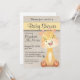 Cette douce petite girafe joyeuse apportera la joie à tout le monde comme elle invitation des amis et de la famille à un baby shower. Arrière - plan beige texturé aux accents jaunes mous dispose d'une petite girafe mignonne qui rend cette invitation sans sexe pour une petite fille ou un bébé garçon. Customisez avec vos propres détails et créez une invitation à la douche personnalisée comme personne d'autre. Idéal pour un zoo animal bébé thème pépinière.