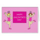 Deux dames dansantes de dessins animés, vêtues de tenues roses, portent une pancarte rose entre elles. Le panneau indique 'Bonne Saint-Galentin'.