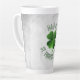 Savourez votre café du matin ou latte avec un festif Happy St. Patrick's Day Latte Mug. Le design de la tasse en latte est orné d'un shamrock vert avec le dicton "Joyeux Saint Patrick" dans la typographie grunge moderne.