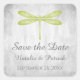 Mariage simple et élégant Stickers Enregistrer la Date avec une libellule verte contre un arrière - plan gris grunge. Ce design est un choix unique pour annoncer un mariage moderne. Facile à customiser avec vos détails mariages. Cliquez sur "Customiser" pour trouver d'autres options de personnalisation.