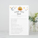 Un petit citrouille d'Halloween trouve le baby shower des invités. Design moderne sur le thème de l'Halloween pour une fête de boo ! Cette feuille de jeu de baby shower comprend un citrouille, un casquette sorcier, un ballon, des bonbons et des étoiles. Ce jeu est parfait pour les parties de douches pour bébés filles et garçons!