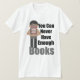 Un design graphique d'un type avec une pile de livres de l'artiste et designer Charmaine Paulson sur un t-shirt homme. Le texte dit : "Vous ne pouvez jamais avoir assez de livres".