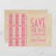 Bordure Art déco élégante et raffinée Enregistrer la date Carte postale avec une bordure motif magenta déco sur un arrière - plan de texture de papier faux. Cette carte postale de date est un choix idéal pour annoncer votre mariage moderne. Facile à customiser, il suffit d'ajouter les détails de votre mariage dans les champs de texte fournis. Cliquez sur "Customiser" pour trouver d'autres options de personnalisation.