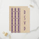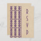 Elégante et raffinée carte postale RSVP Art Déco Border Wedding avec une bordure motif violet déco sur un arrière - plan de texture de papier imitation. Cette carte postale de réponse design est un choix idéal pour un mariage moderne. Facile à customiser, il suffit d'ajouter les détails de votre mariage dans les champs de texte fournis. Cliquez sur "Customiser" pour trouver d'autres options de personnalisation.