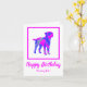 Silhouette de chien de terrier frontière en rose chaud fou et bleu brillant abstrait motif moderne. Le message d'anniversaire à l'intérieur peut être changé à tout ce que vous voulez. Personnalisez avec le nom sur le devant.