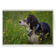 Collie frontalier reniflant un pré de beurtasses