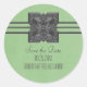 Bordure de médaillon Regal et élégante Sauvons les Stickers de Date avec un médaillon métallique art numérique et une bordure à trois bandes sur un arrière - plan vert clair. Ces autocollants audacieux et élégants sont parfaits pour annoncer votre mariage tout aussi audacieux et élégant. Facile à customiser, il suffit d'ajouter les détails de votre mariage dans les champs de texte fournis. Cliquez sur "Customisez-le" pour trouver d'autres options de personnalisation comme changer de police ou de taille de texte.