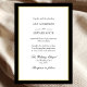 Noir et blanc avec une touche d'or classique faire-part de mariage avec introduction générale pour les hôtes mariés et mariés : avec leurs familles. Blocage élégant, script et texte brut dans une bordure noire et à l'ombre d'or. Un dos noir. Pour ajuster la disposition, cliquez sur Customiser, Modifier le texte, puis cliquez sur et faites glisser les sections de texte vers les emplacements souhaités. Utilisez Cntrl pour sélectionner et déplacer plusieurs sections à la fois.