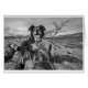 Collie frontalier à l'affût dans un paysage de pierre karstique avec un baudrier gnarled dans l'arrière - plan - pris dans le Yorkshire Dales en Angleterre.