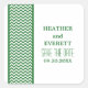 Chevron Border chic et moderne Enregistrer les stickers Date avec une bordure motif simple chevron en vert foncé et blanc. Ce design élégant donnera le ton à un mariage élégant. Facile à customiser, il suffit d'ajouter les détails de votre mariage dans les champs de texte fournis. Cliquez sur "Customiser" pour trouver d'autres options de personnalisation.