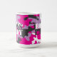 Tasses et tasses personnalisées avec "Dame des Bois" en typographie pochoise avec camouflage rose des deux côtés.