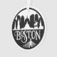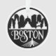 Cette nouvelle illustration en noir et blanc de la ligne d'horizon de Boston présente de nombreux points de repère familiers, dont le bâtiment du capitole, la tour de la maison personnalisée, les bâtiments Hancock, Old Hancock et Prudential, ainsi que le pont Zakim et le quartier financier.