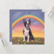 Carte de sympathie commémorative personnalisée Boston Terrier avec une belle peinture d'un Boston Terrier sur une colline paradisiaque avec un magnifique arc en ciel. Symbolisant le chien de Boston Terrier a passé le pont arc-en-ciel à levrette. Vous pouvez le personnaliser avec le nom de votre chien Boston Terrier ou tout autre texte au verso de la carte. Fait un souvenir spécial ou un cadeau de sympathie pour tout amoureux des chiens de Boston Terrier si leur cher chien est passé.