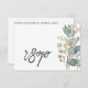 This elegant wedding RSVP card features soft watercolor eucalyptus foliage paired with refined black typography on a clean white background. Designed to coordinate seamlessly with the matching invitation and welcome sign, this minimalist RSVP card offers a timeless botanical look perfect for modern, classic, garden, or boho weddings. Fully customizable, it allows guests to easily respond while adding a cohesive, polished touch to your wedding stationery suite.